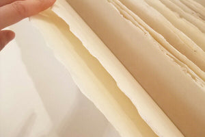 Since this is handmade paper, the thickness varies from sheet to sheet.